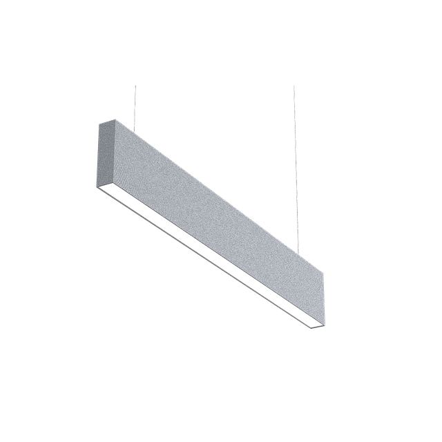 The LX2-ACS luminaire features a 2” aluminum profile wrapped in sound-absorbing fabric for noise reduction, available in a 4-foot length and various finishes. It provides even direct and soft indirect illumination with a frosted PMMA lens and uses SAMSUNG LEDs for high color rendering. ETL damp location listed, with a dimmable power supply and long-lasting performance.